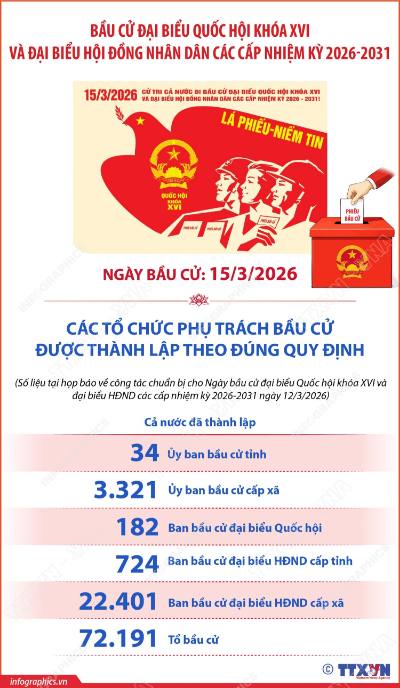Chính trị - Ngoại giao Bầu cử Quốc hội và HĐND các cấp: Cả nước có gần 79 triệu cử tri sẽ tham gia bỏ phiếu 12/03/2026 21:38