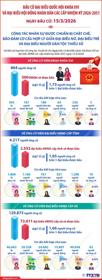 Chính trị - Ngoại giao Số lượng đại biểu được bầu trong Quốc hội khóa XVI và HĐND các cấp nhiệm kỳ 2026-2031 15/03/2026 05:31
