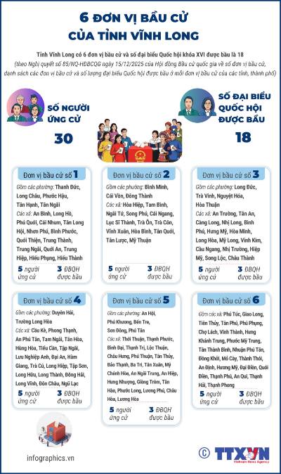 6 đơn vị bầu cử của tỉnh Vĩnh Long