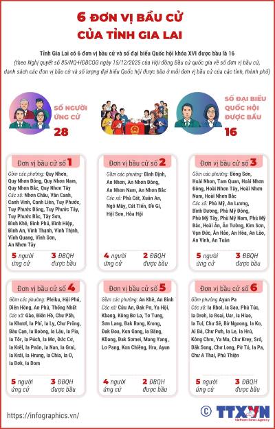 6 đơn vị bầu cử của tỉnh Gia Lai