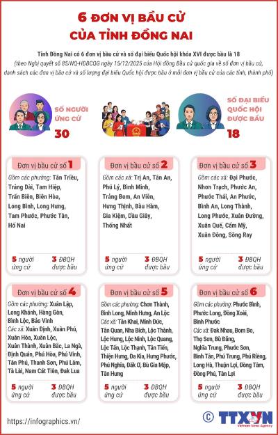 6 đơn vị bầu cử của tỉnh Đồng Nai