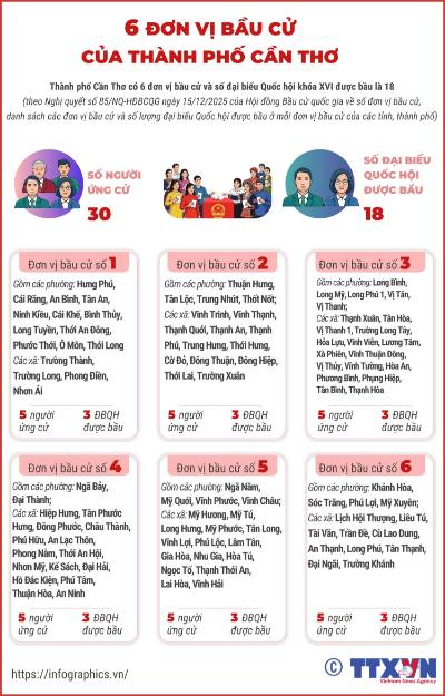 6 đơn vị bầu cử của thành phố Cần Thơ