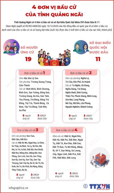 4 đơn vị bầu cử của tỉnh Quảng Ngãi