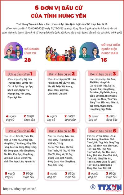 6 đơn vị bầu cử của tỉnh Hưng Yên